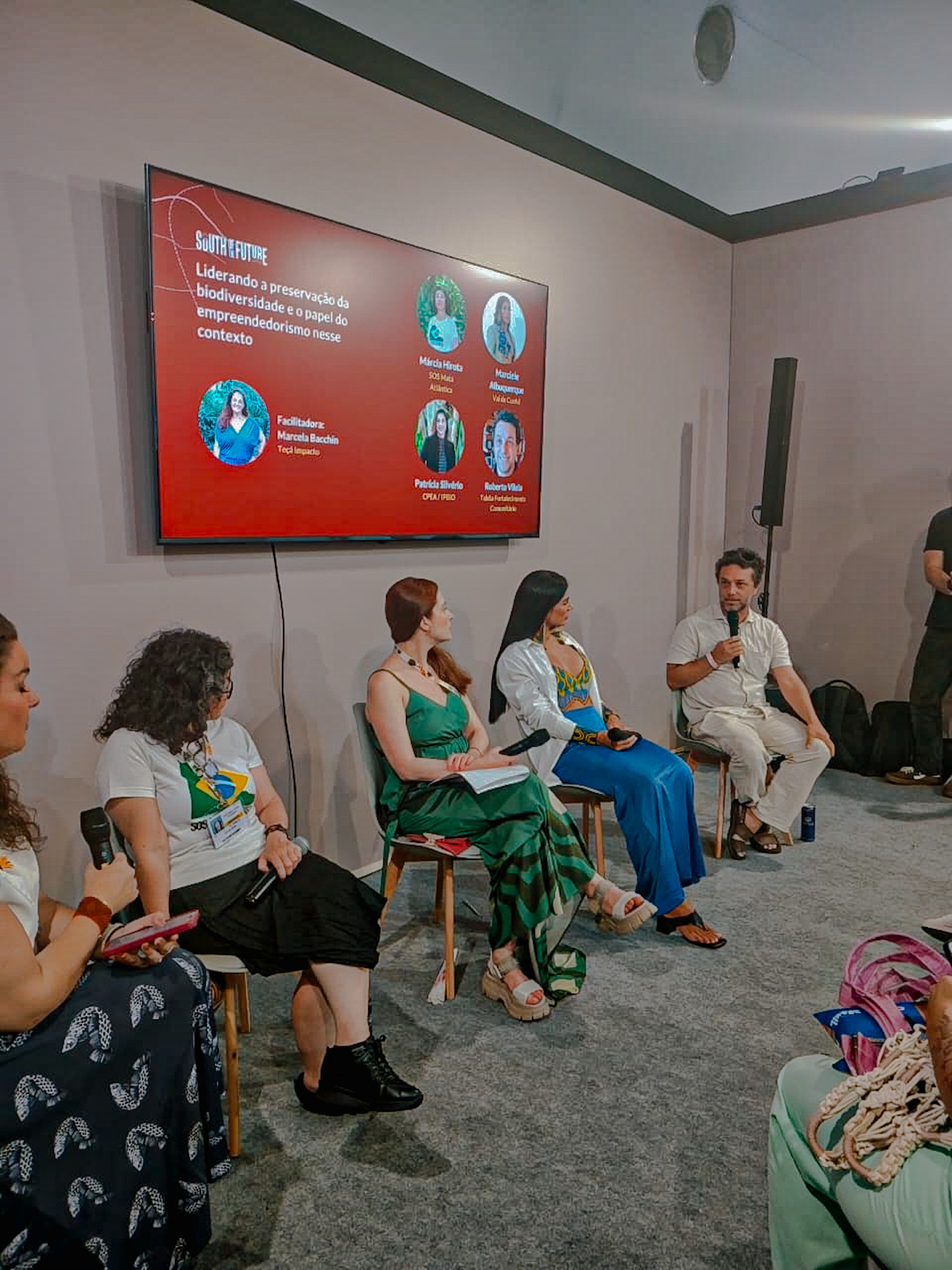 A Tabôa ainda esteve em um segundo painel na Zona Verde, sobre preservação da biodiversidade e o papel do empreendedorismo, no dia 18, organizado pela iniciativa South of the Future. Nele, foi apresentada a experiência institucional no fortalecimento econômico da agricultura familiar e agroecológica, por meio da facilitação do acesso a crédito e recursos técnicos, para impulsionar empreendimentos socioeconômicos, como agroindústrias familiares, viveiros de mudas, dentre outros.